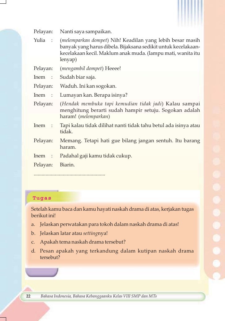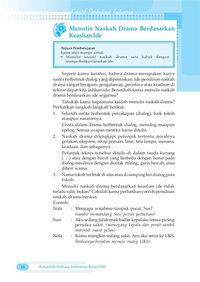Jelaskan Struktur Teks Drama Berikut Bersama Kelompokmu - Kelas 08 Smp Bahasa Indonesia Siswa 2017 By P E Thea Issuu : Di waktu subuh, terdapat sepasang suami istri yang berjalan bersama menuju masjid untuk.. Berikut merupakan beberapa contoh teks drama singkat dan naskah drama dari berbagai tema seperti, sekolah, keluarga, komedi tidak lama kemudian raka terlihat menghampiri dari kejauhan. Bayu, mandi dulu, masa bangun tidur nyisir sih. Dua hari lagi adalah hari ulang tahun rani, sahabat 2. Pelajari materi membawakan drama (teks drama) mulai dari pengertian, ciri, struktur, unsur dan kaidah kebahasaan diperkuat pendapat para ahli. Teks fabel adalah suatu cerita yang mengisahkan dunia hewan yang perilakunya seperti manusia.