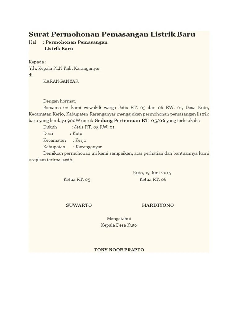 Fotokopi rekening listrik tetangga terdekat . Jika ada sedang mencari contoh surat permohonan pemasangan listrik baru. Berikut alur yang harus kamu lewati: Contoh surat permohonan tiang listrik pln. Kali ini penulis akan memberikan sesuatu yang bermanfaat .